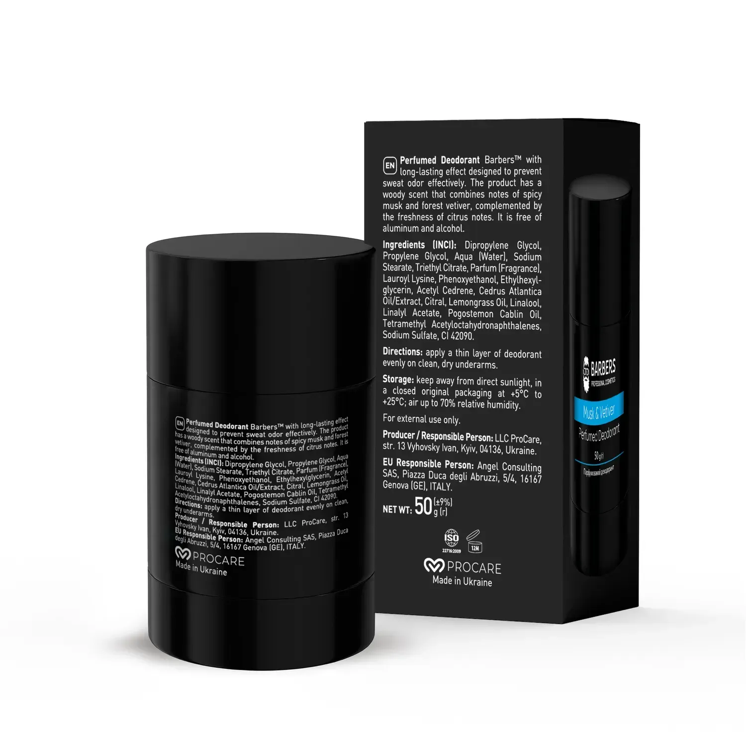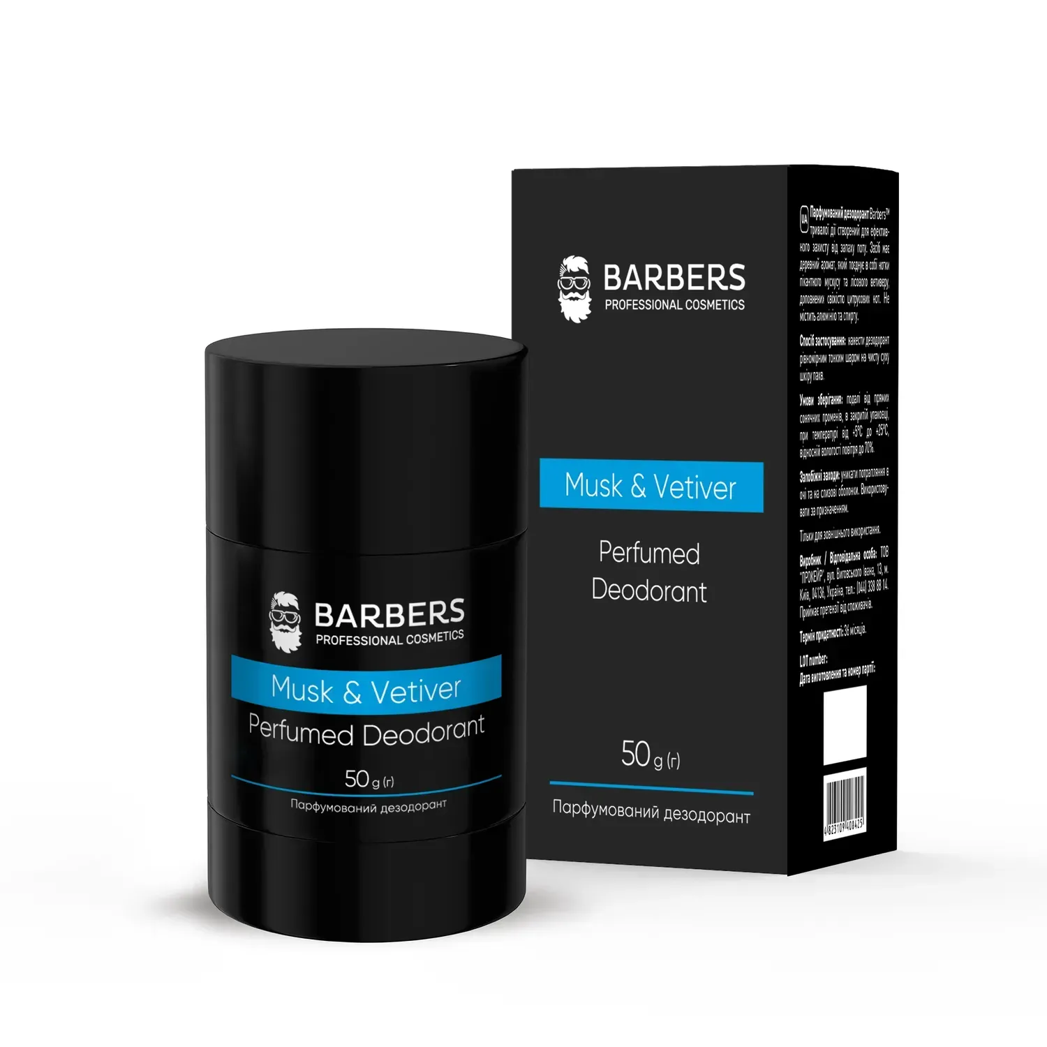 Barbers™ deodorant is a safe and effective product for protection against sweat odor and for underarm skin care. The product provides 24-hour protection against sweat secretions and dry skin throughout the day. Unlike conventional deodorants, Barbers deodorant does not block sweat glands and does not disrupt the natural process of sweating, but only regulates and normalizes its intensity. It effectively masks odors and controls the growth of bacteria, maintaining the natural acid-base balance of the skin. The active ingredients in the deodorant soften and moisturize the underarm skin, providing additional care for it. The product has a pleasant gel texture that easily glides over the skin without leaving marks on clothes. It has a perfumed woody aroma that combines notes of spicy musk and forest vetiver, complemented by the freshness of citrus notes. Suitable for all skin types, including sensitive skin, as it does not cause irritation after use. Free of aluminum, alcohol and parabens.