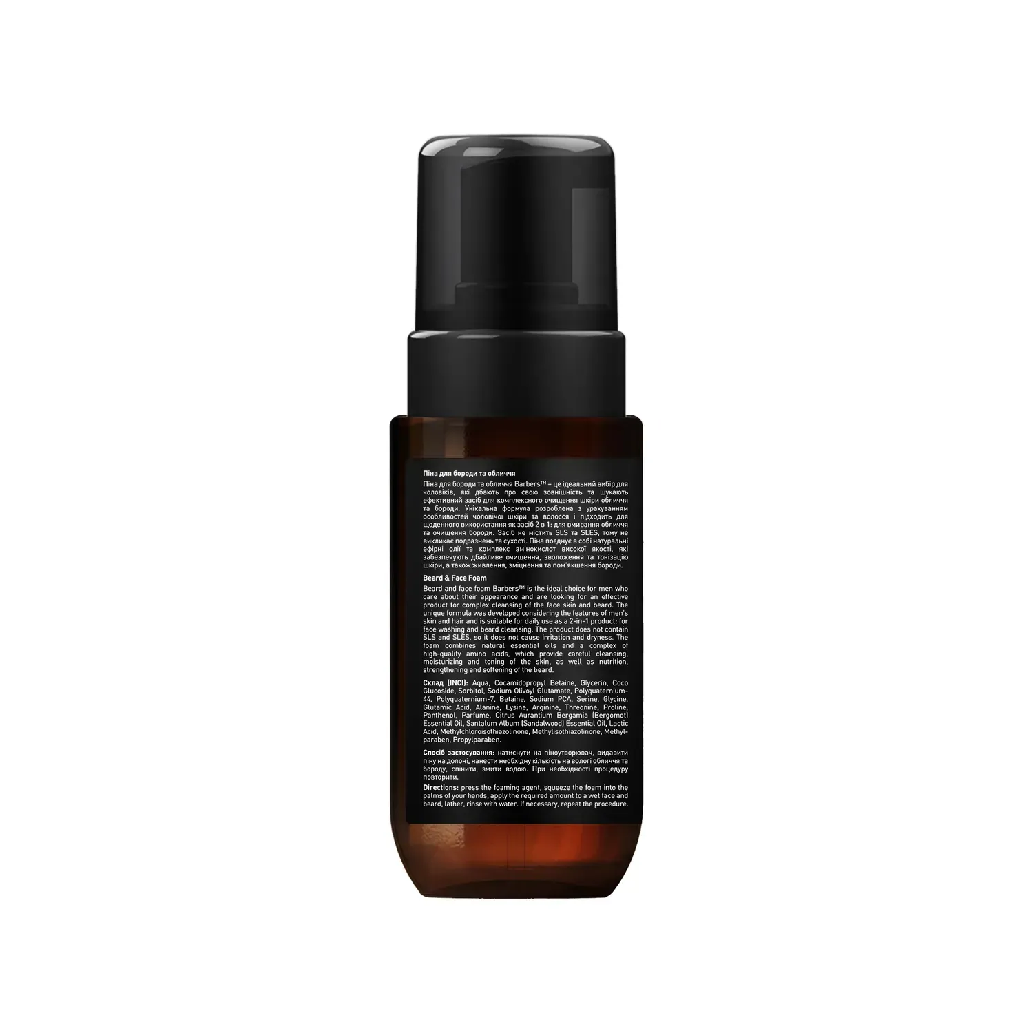 Barbers™ Beard and Face Foam is the ideal choice for men who care about their appearance and are looking for an effective product for comprehensive cleansing of their face and beard. Its unique formula is tailored to the needs of men’s skin and hair and is suitable for daily use as a 2-in-1 facial cleanser and beard cleanser. It is SLS- and SLES-free, preventing irritation and dryness. The foam combines certified essential oils and a high-quality amino acid complex to gently cleanse, moisturize, and tone the skin, while nourishing, strengthening, and softening the beard. It has a unique scent with notes of fresh bergamot and piquant musk.