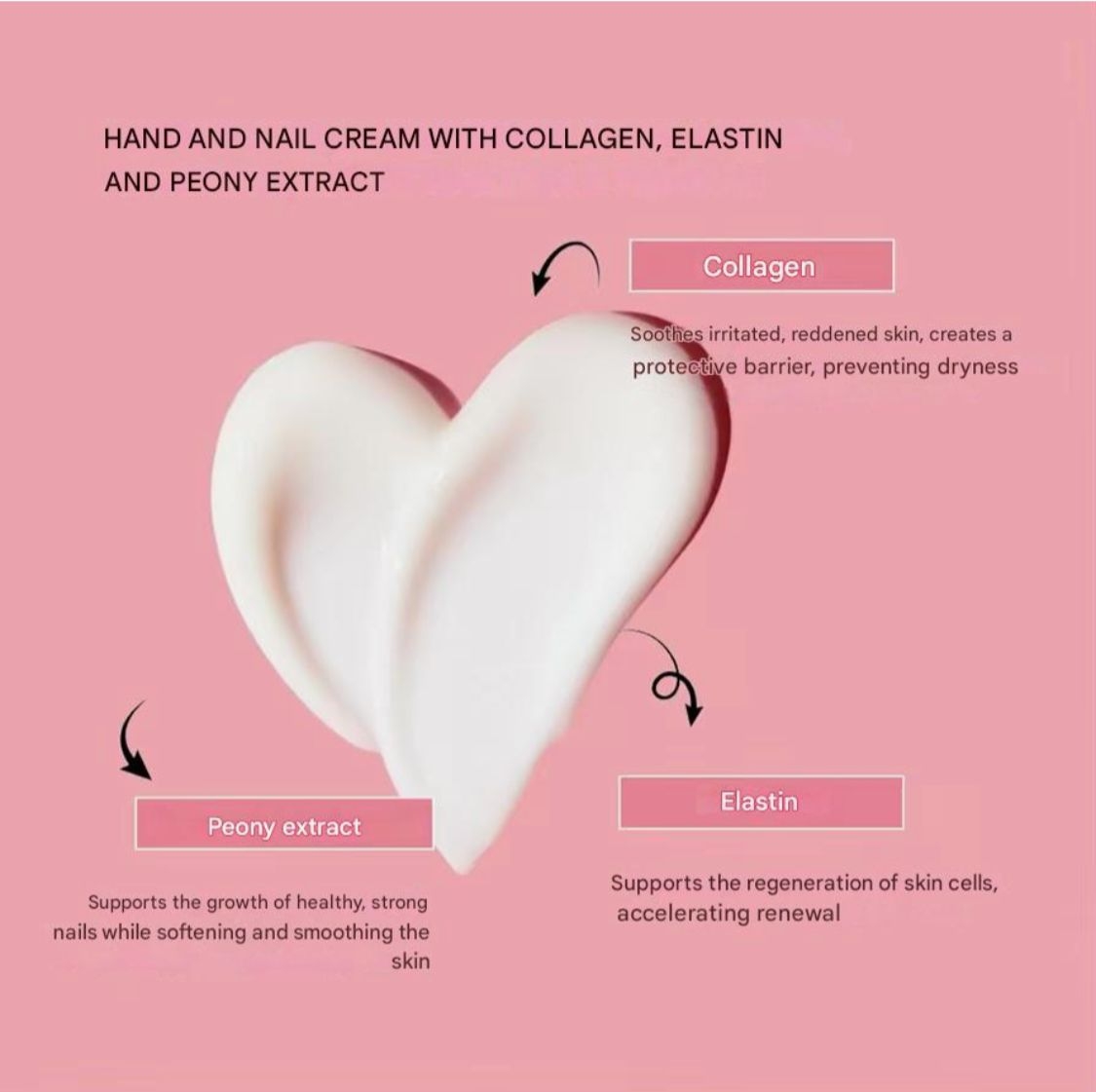 - Peony extract: It promotes the growth of healthy, strong nails while softening and smoothing the skin.