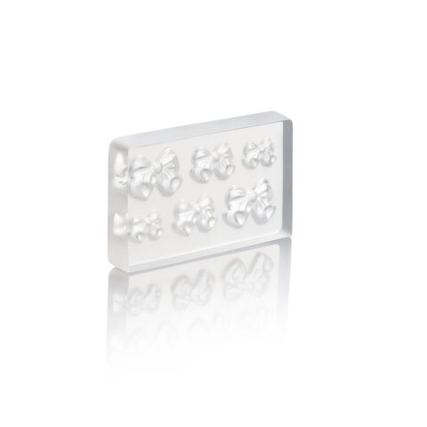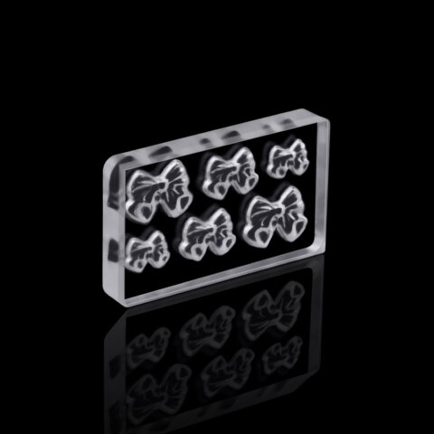The mold is made of transparent silicone, inside which the shapes are embossed. Model 01 is a volumetric bow of different sizes. Just fill the mold with any colored gel, polymerize – and your DIY 3D sticker is ready. The drawings will be completely identical and at the same time detailed, and the decor process itself will take only a couple of minutes.